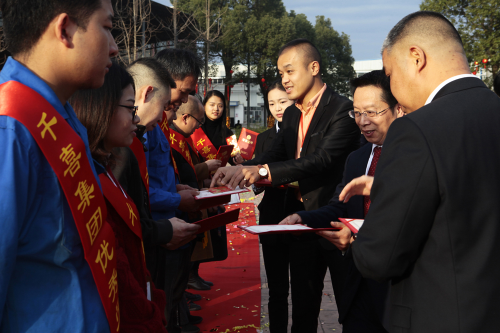 随后,进行了2019年度优秀员工和党员的表彰仪式,各事业部共有41位人员和1位党员获得了优秀员工和优秀党员的荣誉称号。各事业部优秀员工依次上台,由总经理代表集团为他们授予荣誉证书及奖励。当一份份沉甸甸的证书交到他们手上时,便是对他们努力工作的最大肯定和褒奖,也希望未来他们能带着千喜人的精神继续前行,不断挑战,不断超越。同时,集团办公室韦伟作为优秀员工代表上台发言:感谢公司提供的平台,让她能够在工作中实现自我价值,同时,也感谢千喜这个大家庭,让她在紧张的工作之余体会到了家的温暖和亲友般真挚的情谊。未来,依然会在自己的岗位上发光发热,为千喜集团的发展贡献自己的力量。
